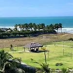 Beach Living - Ap Cobertura Vista Mar Aquiraz hotel ligt op ongeveer 5 minuten te voet van Igreja Sao Francisco en biedt een buitenzwembad aan. De accommodatie biedt waterglijbanen, een buitenzwembad en een terras aan. De kamers hebben uitzicht op de zee.